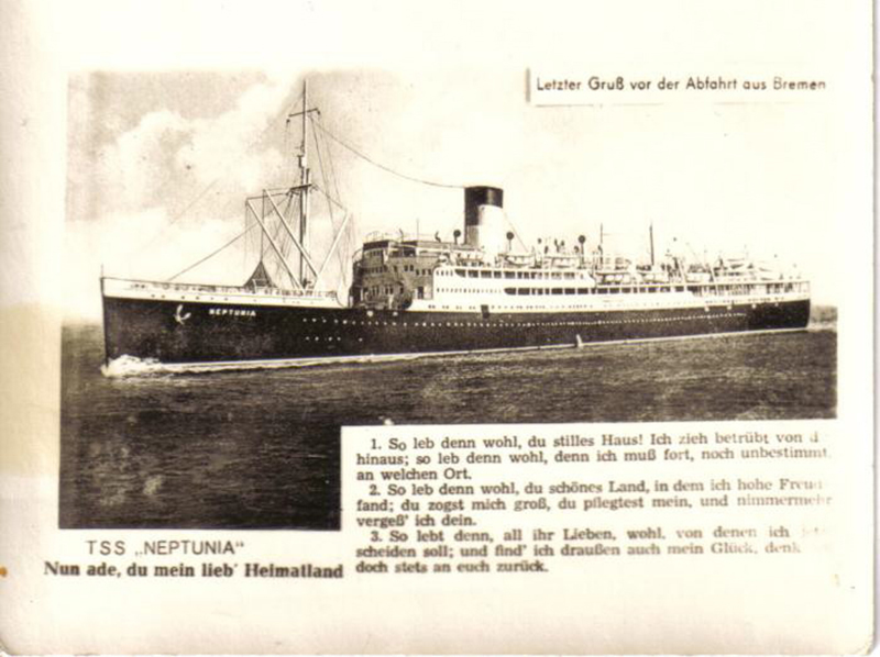 Mon père étant compagnon maçon en plus d’être fermier cherchait du travail et nous avons déménagé dans le petit village de Neuenhaus, près de la ville de Stuttgart. Nous avons vécu là environ deux ans, et ma sœur et mon frère aînés de Prislich sont venus nous rejoindre. Ces années-là, au début des années 1950, l’économie allemande se relevait lentement de la guerre. Mon père n’y voyait pas beaucoup de perspectives d’avenir pour lui et notre famille, et il finit par décider qu’il était préférable d’émigrer pour commencer une nouvelle vie. Son premier choix était l’Australie, mais cela ne fonctionnant pas, alors il fit une demande pour immigrer au Canada. Le Canada accepta mon père comme immigrant et, en juillet 1954, il prit un train de Neuenhaus vers Bremenhaven, en Allemagne, où il prit la mer vers Halifax à bord du M.S. « Arosa Star ». Mon plus jeune frère, Klaus, était né en avril 1954 et ma mère, mon frère Karl et moi sommes restés en Allemagne jusqu’à l’année suivante, 1955.