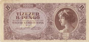 Face avant de la vieille monnaie hongroise, valeur 10000 Tizezer.