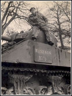 J’ai rejoint une mission active en Hollande en tant que commandant de troupes pour l’Escadron « B » des Fusiliers de Sherbrooke, ce qui signifiait que j’avais quatre chars d’assauts sous mon commandement, chacun avec un nom commençant avec la lettre « B » : Barbara, Be Good, Bohunk et le mien « Bomb »." La « Bomb » du réservoir et les Fusiliers de Sherbrooke a combattu dans toutes les grandes batailles de la campagne à travers la France, la Belgique, la Hollande et l'Allemagne, même contre Hitler redoutable "SS" équipe.